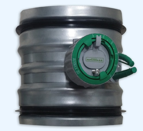 Уникальный, самый тихий сопловый клапан для регулирования и измерения расхода воздуха. В отличие от стандартных дроссель клапанов при полном открытии позволяет роботизированным машинам проходить сквозь себя для чистки воздуховодов. Имеет более компактные размеры, чем стандартные ирисовые клапаны. Наружный диаметр не повышает размера канала. Диапазон рабочих температур от -30 до +70 °C.